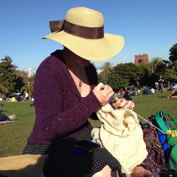 knitting in the park.