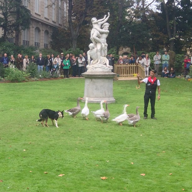 A dog herding geese. Like you do.