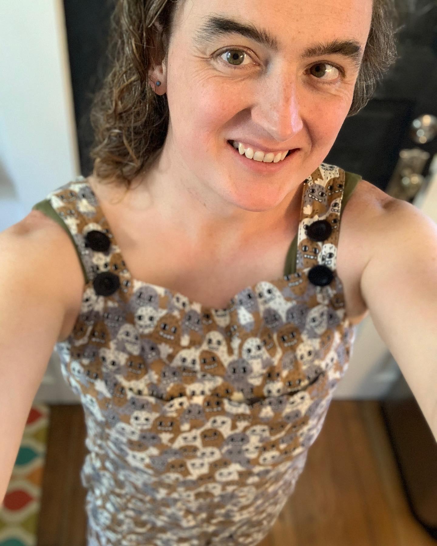 Theresa O'Connor added a new photo. (Facebook)It’s #lesbianvisibilityday so here I am! Visible, lesbian, and sheltering in place. Monster overalls from Nooworks!