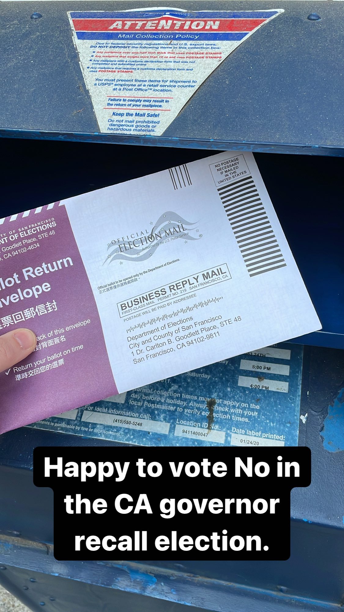 Happy to vote No in the CA governor recall election.