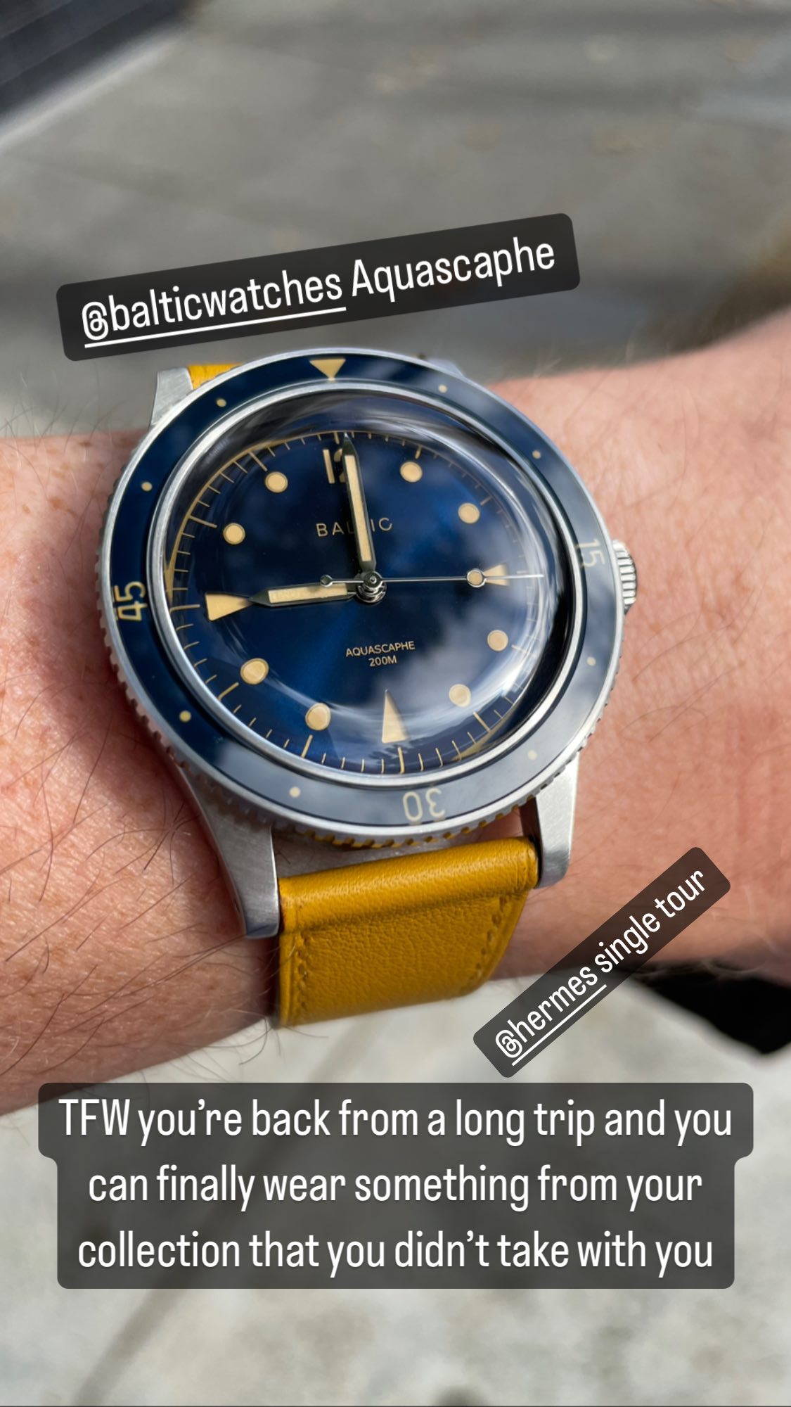 TFW you’re back from a long trip and you can finally wear something from your collection that you didn’t take with you Aquascaphe @hermes single tour