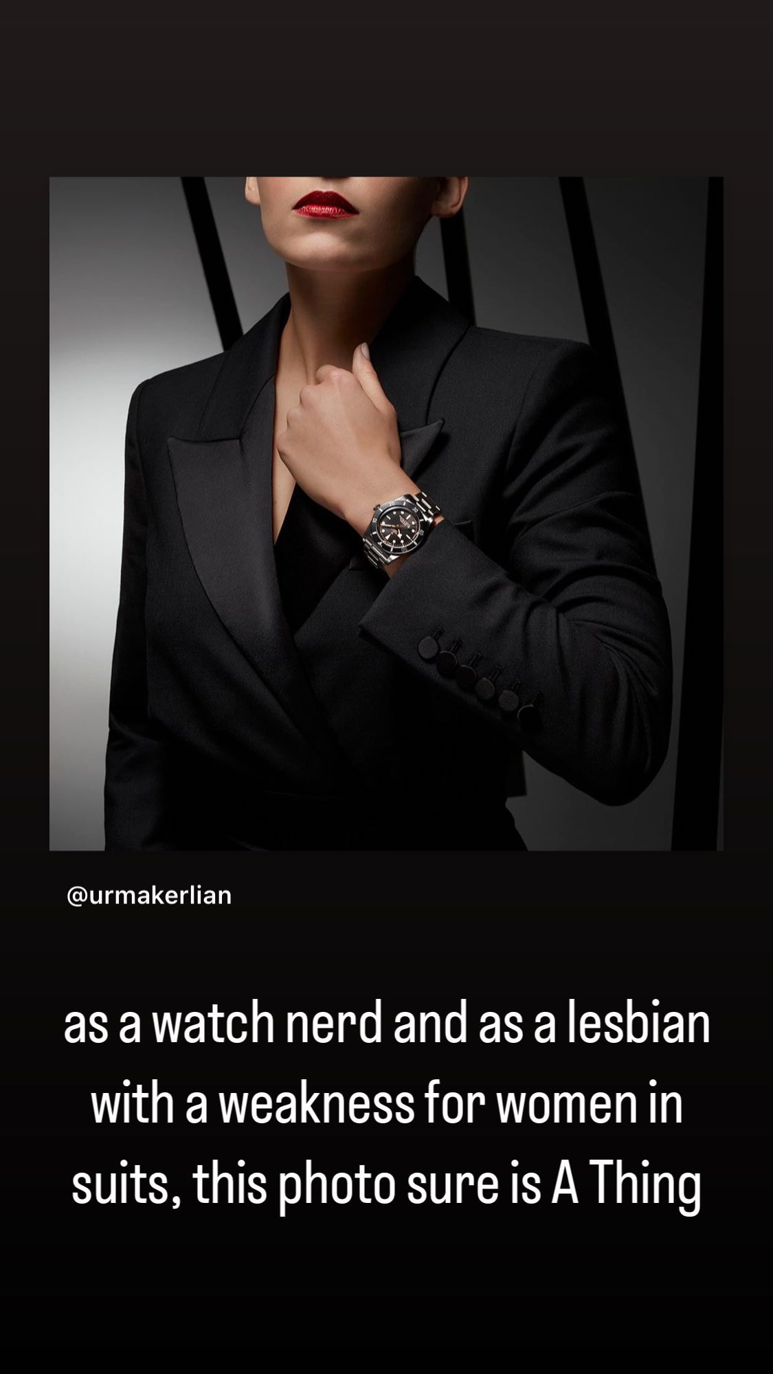 as a watch nerd and as a lesbian with a weakness for women in suits, this photo sure is A Thing