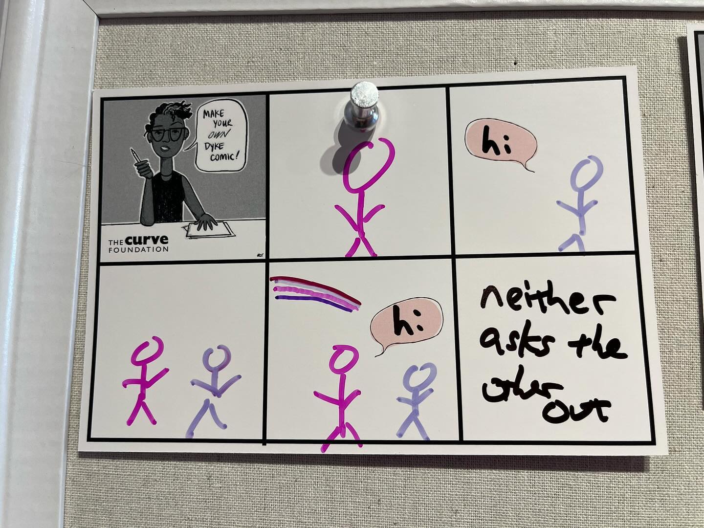 The GLBT Museum invites visitors to draw their own dyke comic.