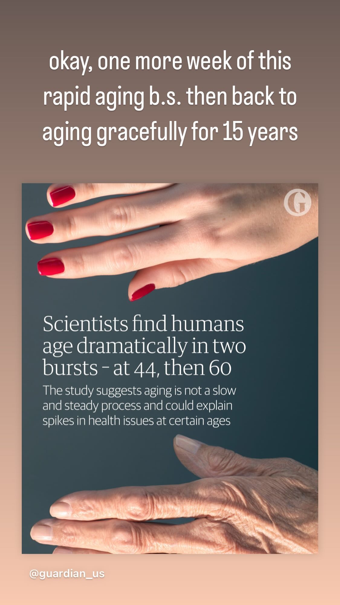 okay, one more week of this rapid aging b.s. then back to aging gracefully for 15 years